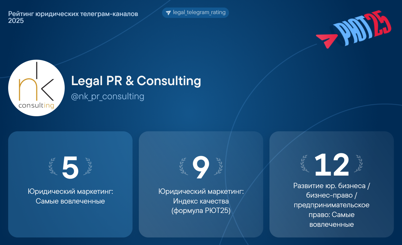 Legal PR & Consulting Telegram channel has improved its position in the RUT25 Rating